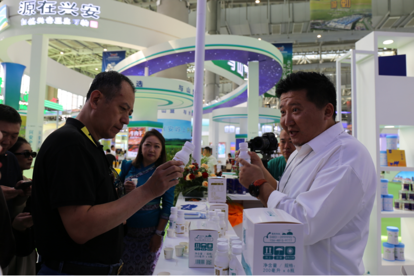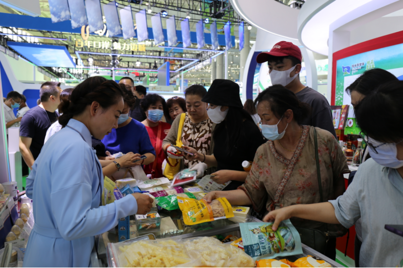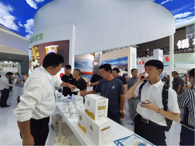 在國家綜合展區(qū),來自蒙古國、巴基斯坦、澳大利亞、西班牙、意大利等國家的工藝品,特色產(chǎn)品和文化形象展示吸引了眾多的參觀者;在省市展區(qū),參觀者不僅能品嘗到各地的美食,如云南的野山菌、貴州的茶葉,寧夏的枸杞等,也能購買到各省市的名優(yōu)土特產(chǎn)品及代表性產(chǎn)品。在盟市展臺前,參觀人群更是絡(luò)繹不絕,阿拉善的駝奶、巴彥淖爾的優(yōu)質(zhì)農(nóng)產(chǎn)品、錫林郭勒的草原羊、興安盟的大米、烏蘭察布的馬鈴薯制品,都吸引了大量的人群購買。其中,參觀者們對神駝乳業(yè)所產(chǎn)的駝奶制品產(chǎn)生濃厚興趣,向工作人員了解駝奶的各項營養(yǎng)價值含量。在品嘗到短保15天的鮮駝奶后,紛紛表示“沒有膻味,口感很醇厚!