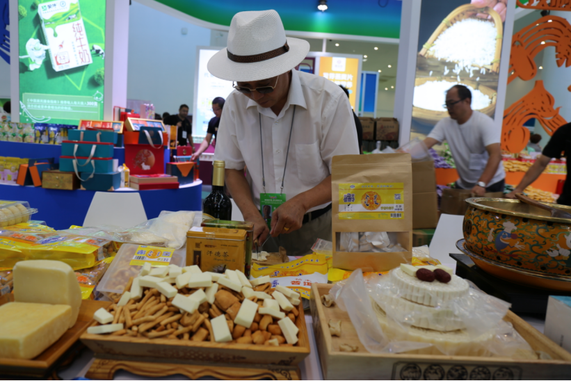 當然,展會上格外受歡迎的商品還是奶制品。這些奶制品不僅有來自蒙古國的戈壁駝奶制品,也有澳大利亞的大包裝牛奶粉;還有來自國內(nèi)內(nèi)蒙古的駱駝奶產(chǎn)品、陜西羊奶產(chǎn)品、廣西的水牛奶產(chǎn)品、青海的牦牛奶產(chǎn)品等,種類之繁多,營養(yǎng)之全面,讓人目不暇接。但在記者看來,現(xiàn)場尤為吸引人的還是內(nèi)蒙古各盟市帶來的擁有地域特色的各式各樣的兼具傳統(tǒng)與美味的傳統(tǒng)奶制品。現(xiàn)場熬制的奶茶,切開的奶皮奶酪,以及現(xiàn)場制作的酸奶、奶豆腐等,飄散出來的奶香味,彌漫在展會里,讓人食欲大開,紛紛品嘗。